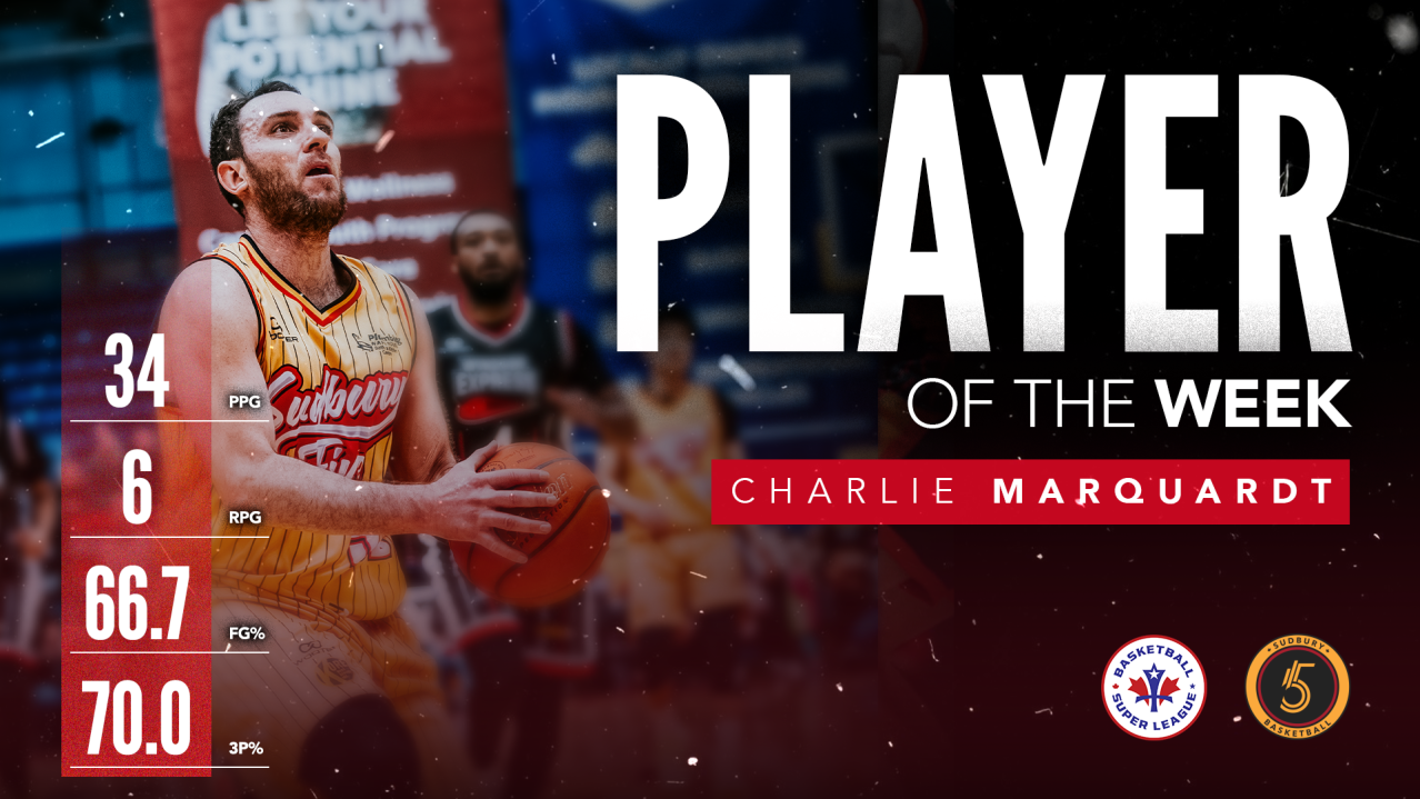 (Greater Sudbury, ON) – The Basketball Super League has named Sudbury Five shooting guard Charlie Marquardt the Player of the Week for January 26th - February 1st after a strong outing on Sunday.