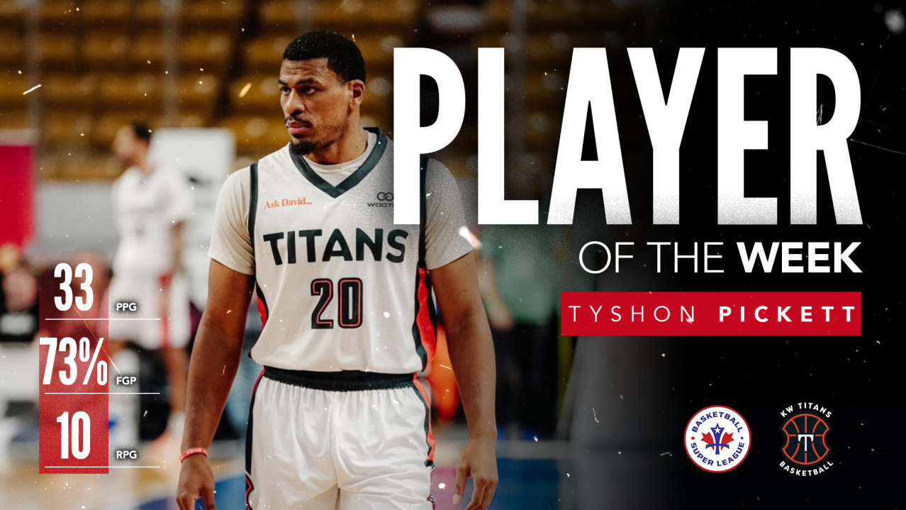 (Greater Sudbury, ON) – The Basketball Super League has named KW Titans power forward Tyshon Pickett the Player of the Week for February 2nd – 8th after an outstanding performance on Saturday against the Sudbury Five.